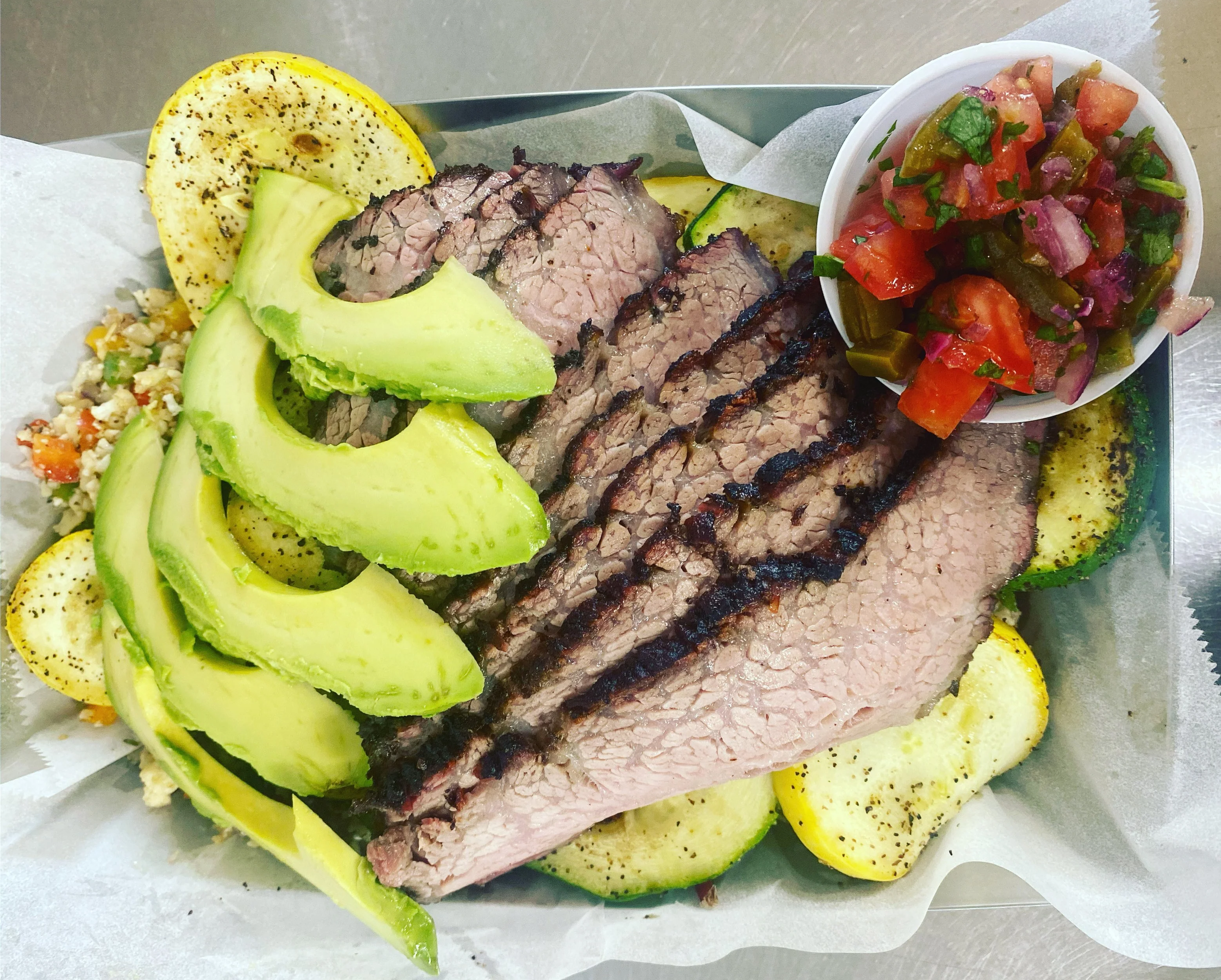 Jac's Salad is the best salad in town! Made with fresh ingredients and house made dressing. No seed oils, only cold pressed extra virgin olive oil. No added sugar. Gluten Free. Whole 30. Paleo friendly. Choose Halal Chicken breast or Tri Tip Steak.