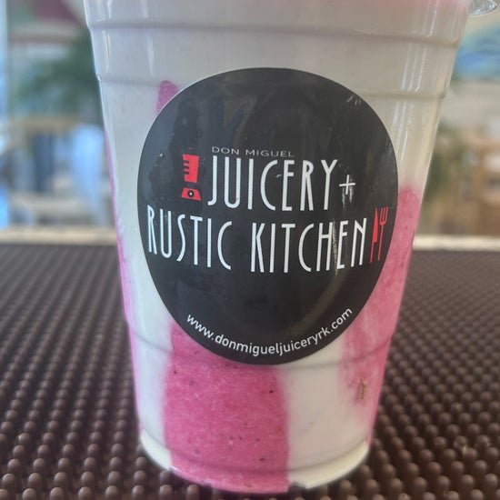 Pitaya (Dragon Fruit), passion fruit, strawberries, banana, pineapple, coconut cream
